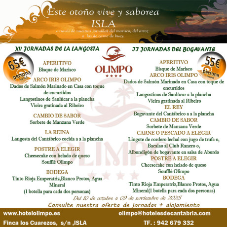 El Hotel Olimpo (4 estrellas) lleva desde el año 1990 al servicio de sus clientes. Se encuentra situado en la localidad costera de Isla (Cantabria) y más en concreto, en un paraje privilegiado de impresionante belleza, probablemente el enclave más bello del norte de España, en una península de 17.000 m2 a pie de playa con acceso directo y privado a las calas de Suances y la Barrosa así como a la Ría de Quejo. Todas sus habitaciones y salones ofrecen unas preciosas vistas al mar, al lago, a las playas de Isla y Noja, a las montañas o al inmenso jardín que rodea al complejo hotelero. Al Hotel Olimpo no le falta ningún detalle para ser un hotel ubicado en un lugar paradisíaco.